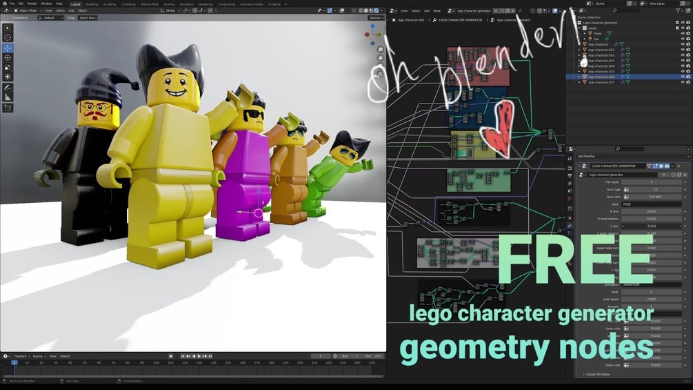 Hi my blender families I was working on this amazing Lego character generator ❤️ this Lego generator is so powerful and you can create thousands of Lego character with in just few clicks,and i hope it will help you a lot and you can learn so many amazing thing with in the nodes . support like share ❤️ and thank you so much for your amazing support it keeps me doing more ❤️❤️❤️